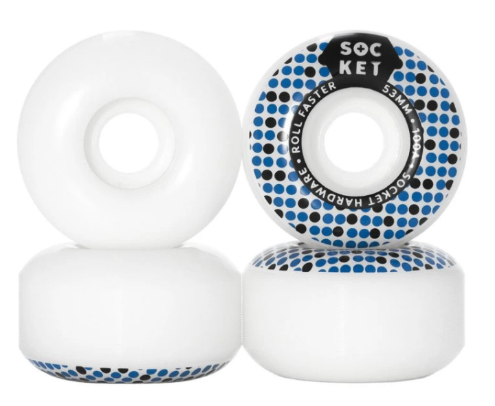 Socket hardware je česká firma zaměřená na výrobu koleček, šroubků, matiček, kingpinů, silentblocků a dalších doplňků. V jejím týmu najdete třeba Fandu Šestáka, Matúše Mozolu, Daniila Platonova, Honzu Malého, Petra Molce a spoustu dalších. V nabídce máme i tuhle sadu koleček, se skvělým poměrem cena/výkon, tvrdostí 100A a velikostí 53 mm. Kola jsou vhodná hlavně pro začátečníky a na horší povrchy. Pro pokročilé a náročné uživatele doporučujeme spíše tvrdost 83B. Tvar je klasickej a vhodnej pro všechny typy skateboardingu. Uvedená cena je za celou sadu 4 koleček.
