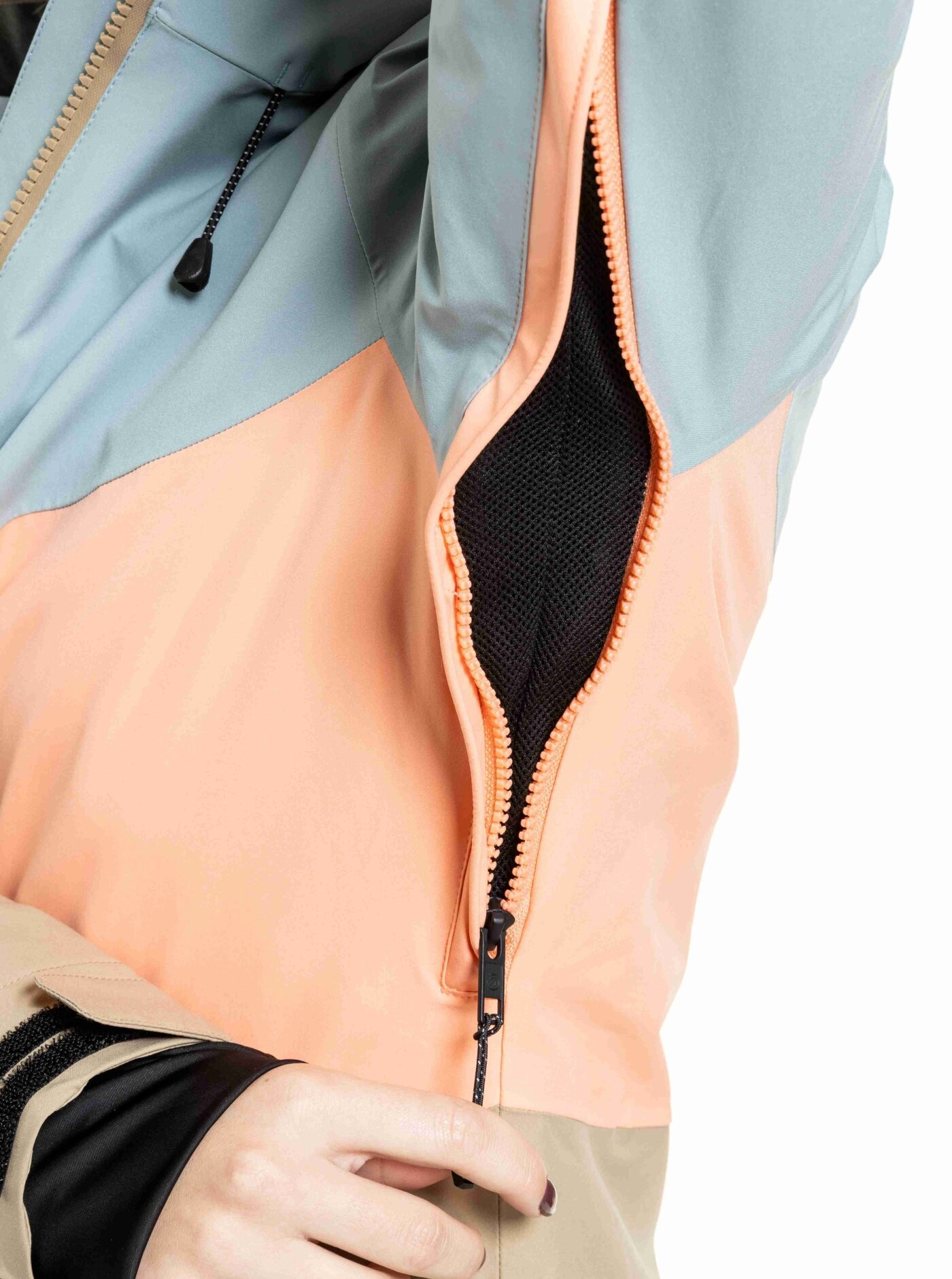 Kirsten ti nabízí nepřeberné množství kapes, kam schováš vše potřebné – od skipasu až po teplé rukavice. Větrání v podpaží je tu pro ty chvíle, kdy potřebuješ trochu chladu, a kapuci i spodní část bundy si můžeš stáhnout, aby ti zima nevnikla dovnitř. Snow catcher, ten sněhový elastický pás se zapínáním na druky a poutky pro uchycení ke kalhotám, zase zaručí, že i když se několikrát vyválíš, zůstaneš suchá. Tak ukaž světu, jak to umíš!