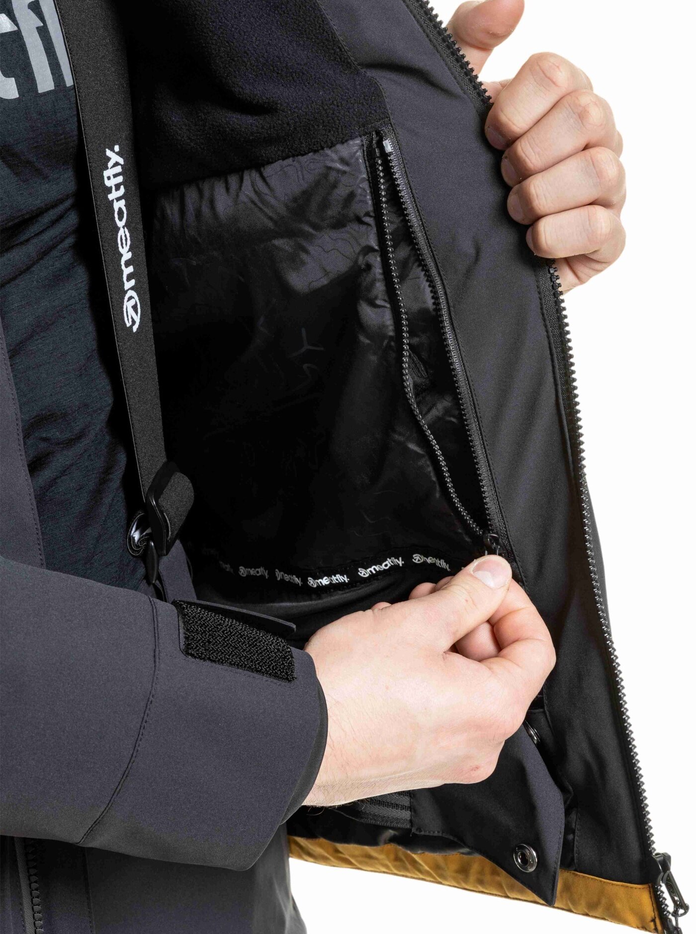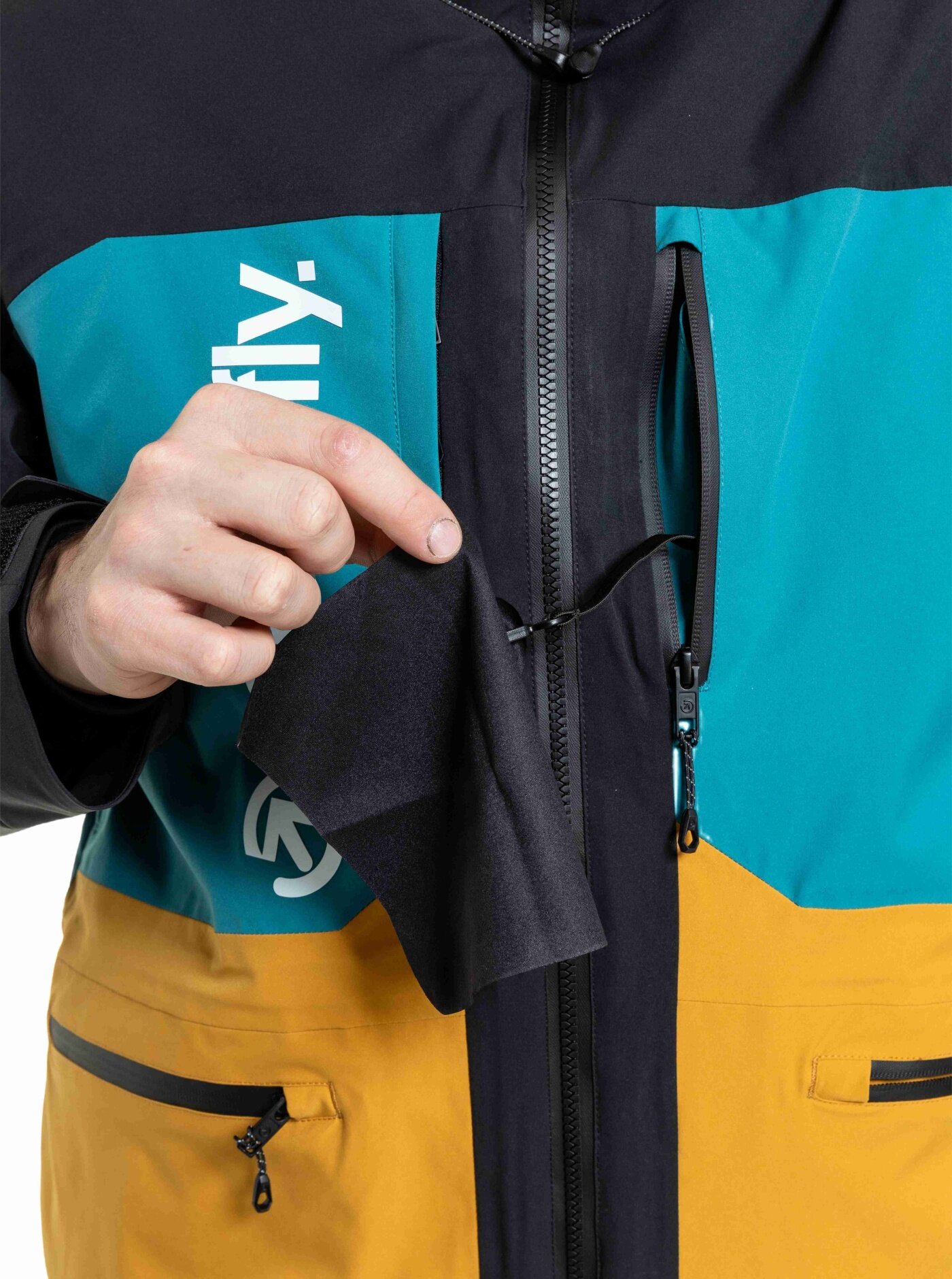 Co se týče kapes, bunda Manifold je také velmi praktická. Má vnější zipové kapsy, náprsní zipovou kapsu a vnitřní zipové kapsy, takže ať už potřebuješ uložit telefon, peněženku nebo klíče, máš kam. Větrání v podpaží je zase tu od toho, když potřebuješ trochu „vyvětrat“ po náročným sjezdu. Kapuci i spodní část bundy si můžeš stáhnout, což je skvělé, když se počasí zhorší. A co je super, je snow catcher. To je ten sněhový elastický pás se zapínáním na druky a poutky pro uchycení ke kalhotám. Přijde vhod, když se zrovna vysekáš, tak ti sníh neproleze pod bundu. Dalším nezbytnou vychytávkou jsou například vnitřní elastické návleky s otvorem pro palec a stahování rukávů pomocí suchého zipu. Tak co, jdeš do toho?