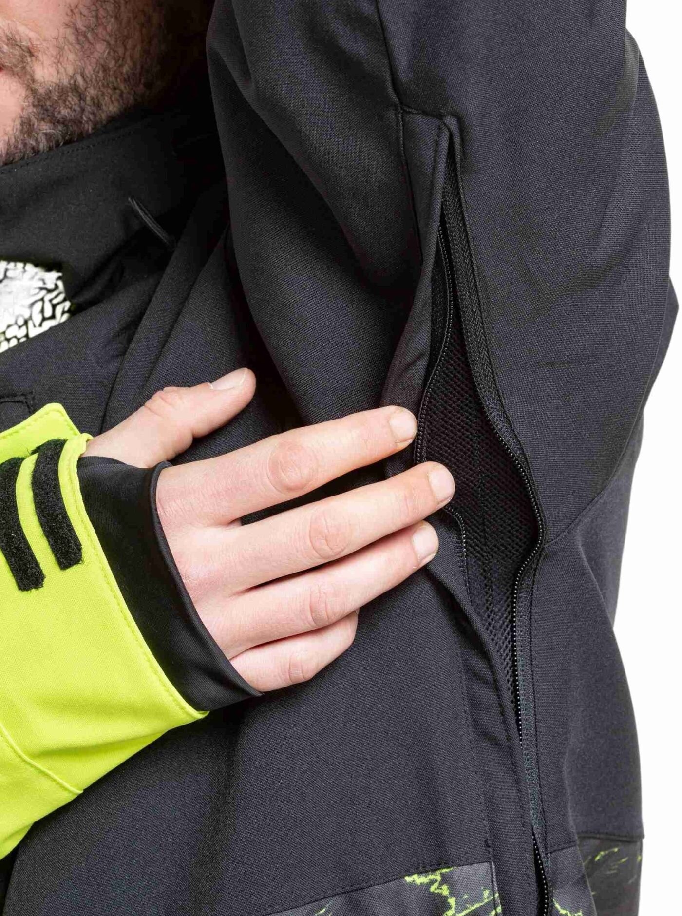 větrání v podpaží kryté zipem