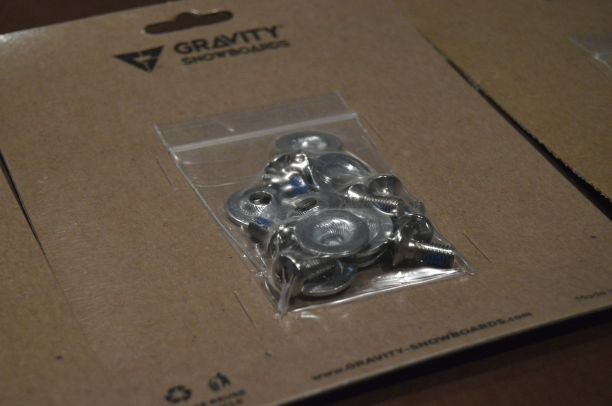 Set osmi šroubků a podložek slouží pro přimontování vázání ke snowboardu.