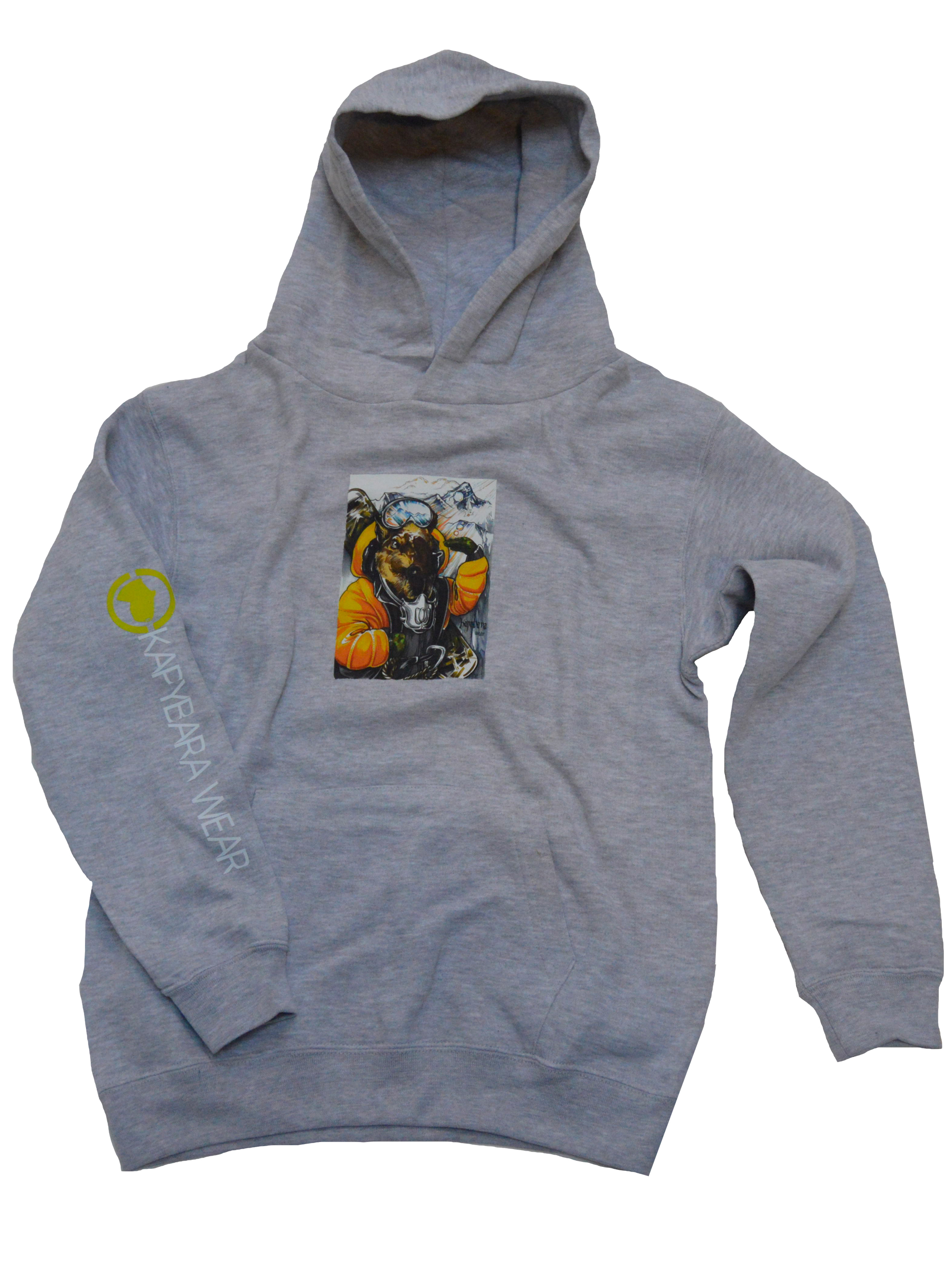 Dětská mikina Kapybara wear – snowboard guide – klokanka v šedé melírované barvě je připravena k odeslání. Složení 295g/m², 50% česaná prstencová bavlna, 50% polyester.