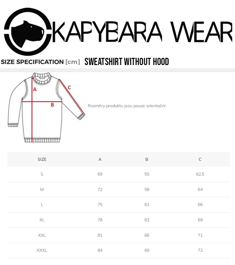 Stylová mikina bez kapuce od streetové značky Kapybara wear s názorem je tu připravená pro Vás k odeslání. Pohodklná mikina o plošné gramáži 295 g/m², 60% bavlna 40%polyester, vnitřní strana počesaná.