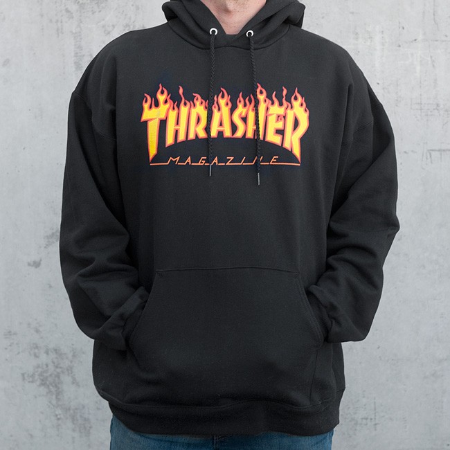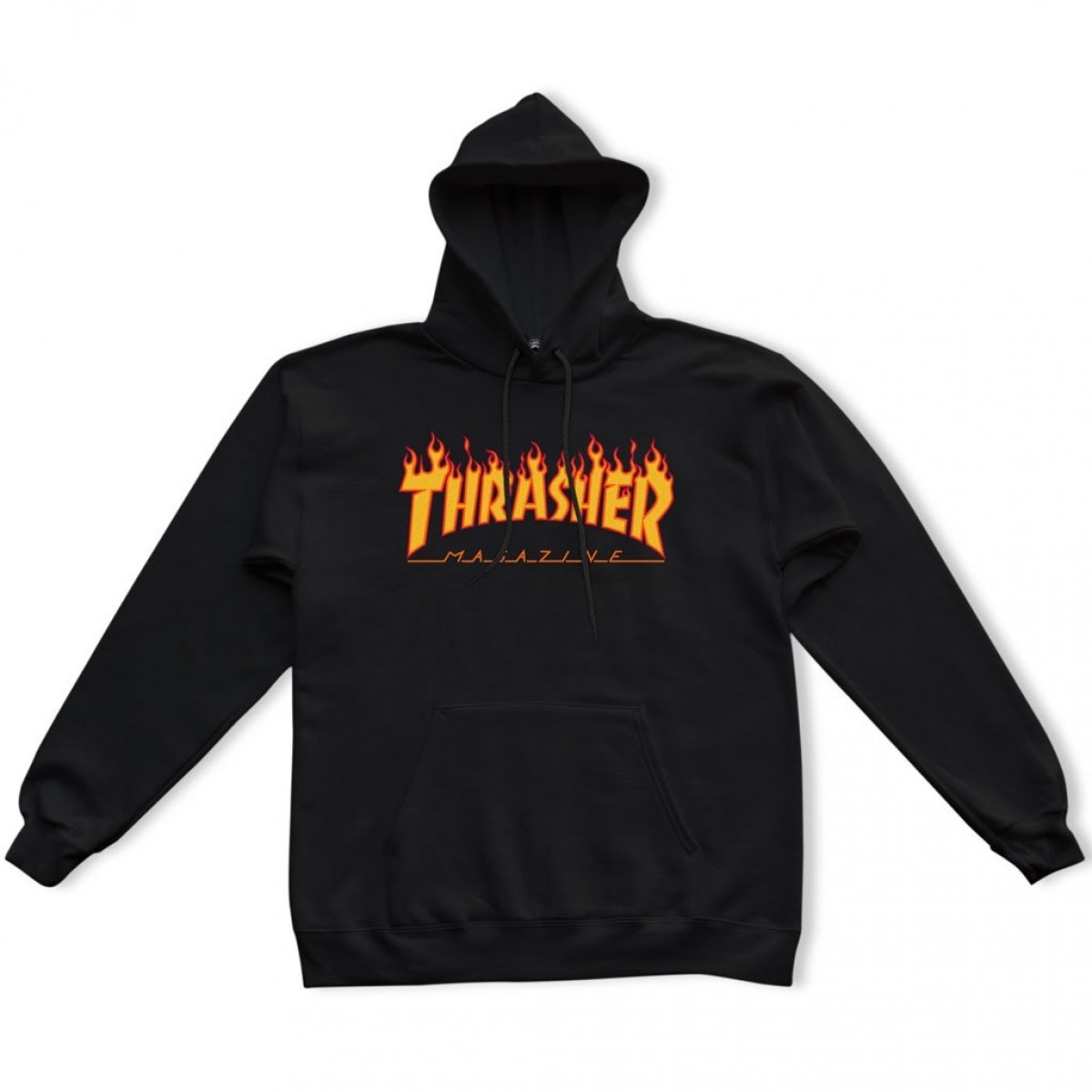 Heavyweight, 90% cotton 10% polyester hooded sweatshirt. features the classic Thrasher flame logo.